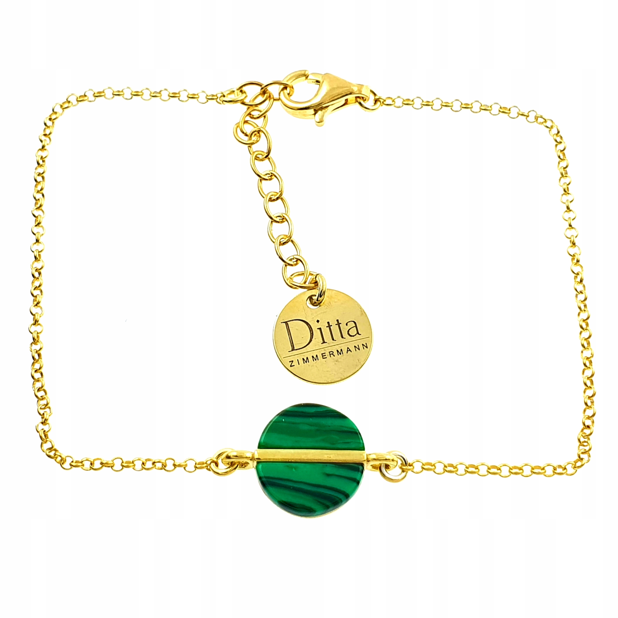 Bransoletka Celebrytka Pozłacana Malachit Srebro